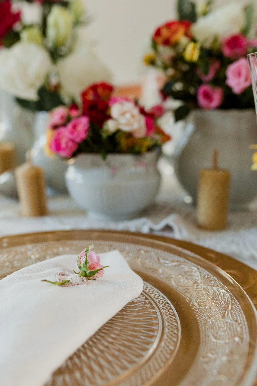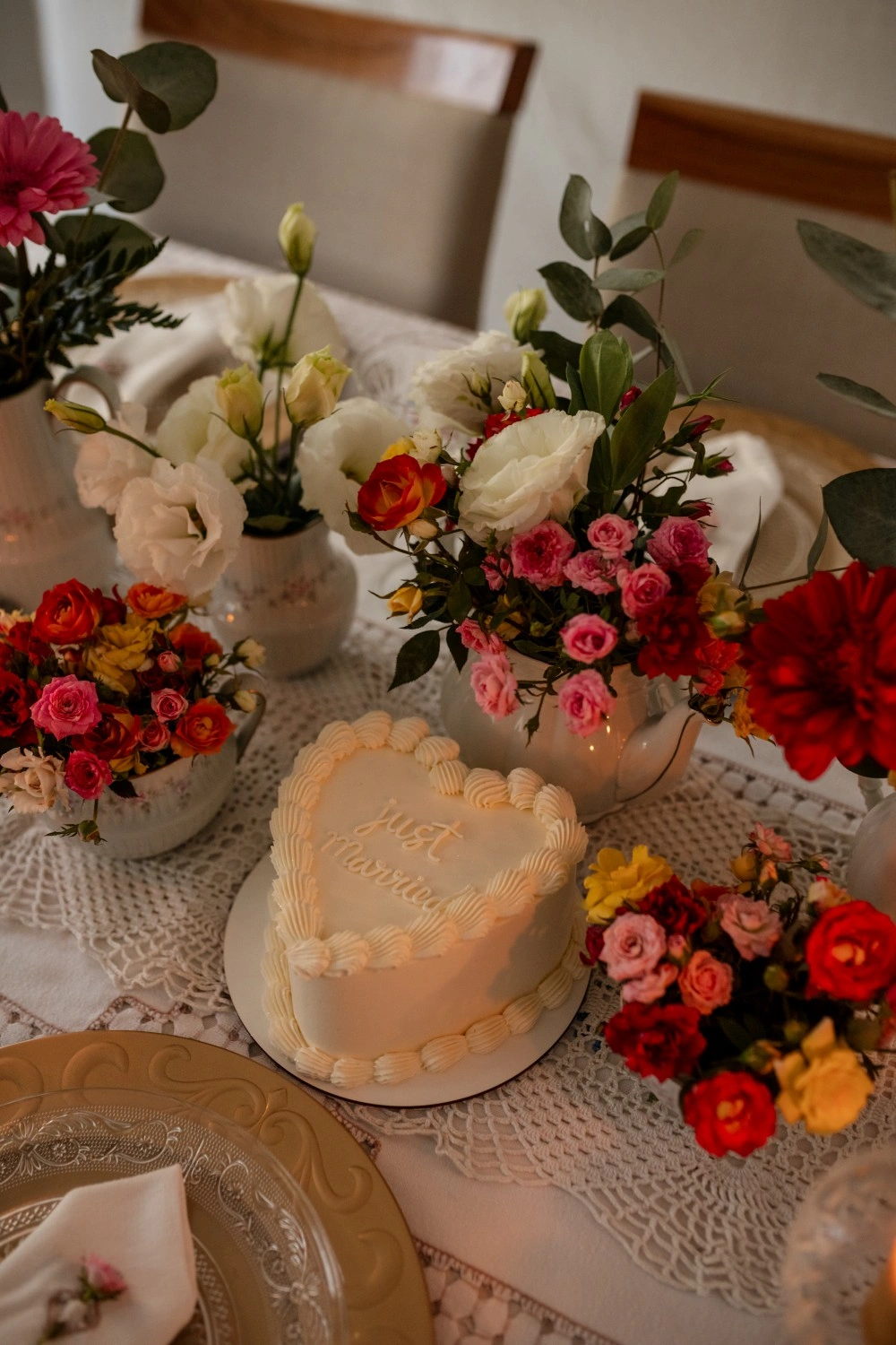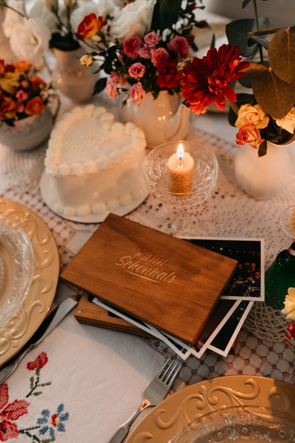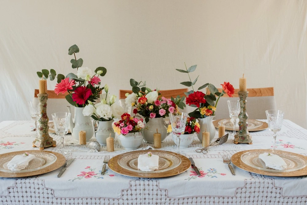 A table woven from the quiet beauty that begins after the vows. It’s the aftermath of “yes”, where the celebration softens, becomes intimate, tender. Flowers overflow in vintage vessels, and candles burn slowly beside a cake that says everything without saying much at all.
