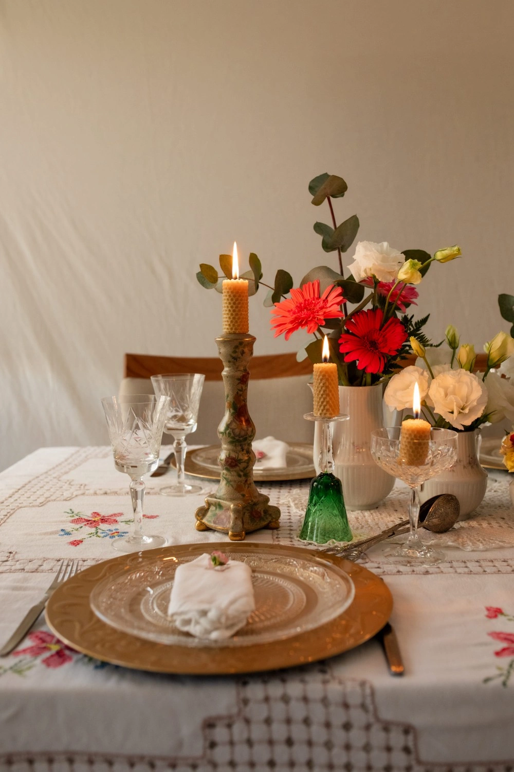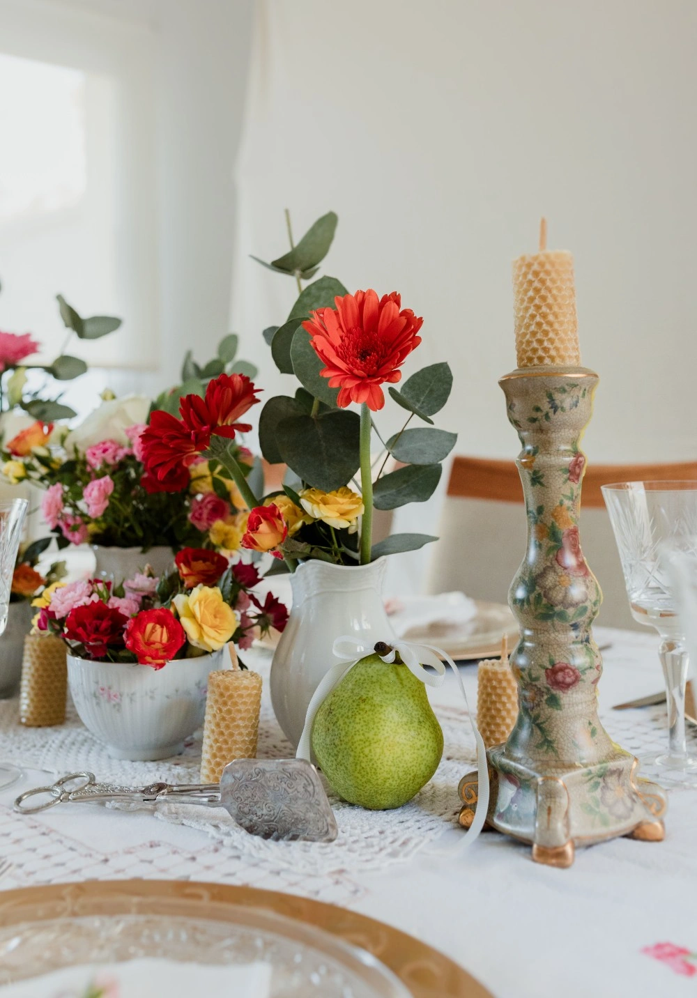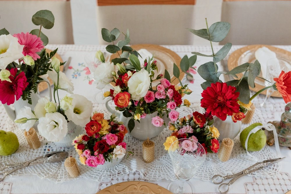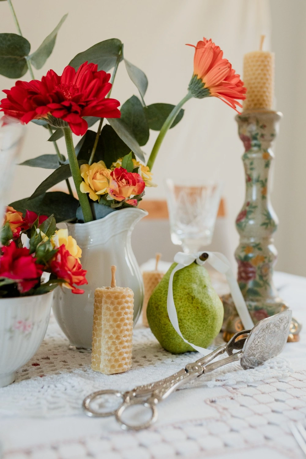 A table woven from the quiet beauty that begins after the vows. It’s the aftermath of “yes”, where the celebration softens, becomes intimate, tender. Flowers overflow in vintage vessels, and candles burn slowly beside a cake that says everything without saying much at all.